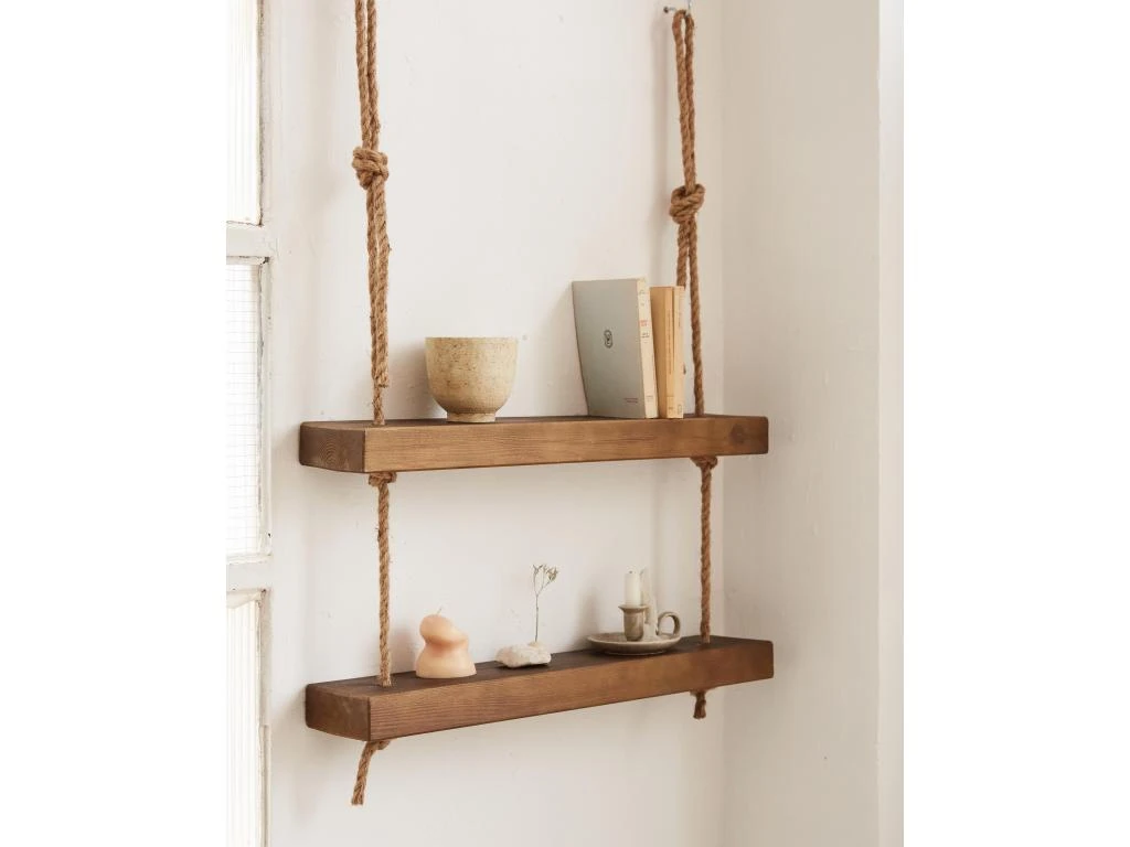 Étagère créée de manière artisanale avec du bois provenant de sources durables.