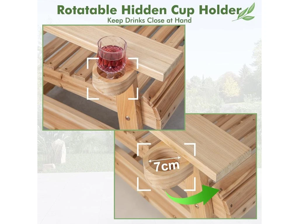 - 【Chaise berçante polyvalente:】Le porte-gobelet rotatif sous l’accoudoir gauche rend vos boissons à portée de main. Et il prend moins de place lorsqu’il n’est pas utilisé avec un design caché. Avec une apparence naturelle et simple, ce sera un ajout parfait à votre porche, au bord de la piscine, au balcon etc.