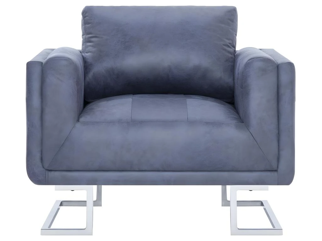 De plus, ce fauteuil est soutenu par des pieds en chrome solide qui assurent une stabilité accrue.