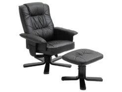 – Le revêtement du fauteuil et du repose-pieds est en synthétique de coloris noir.