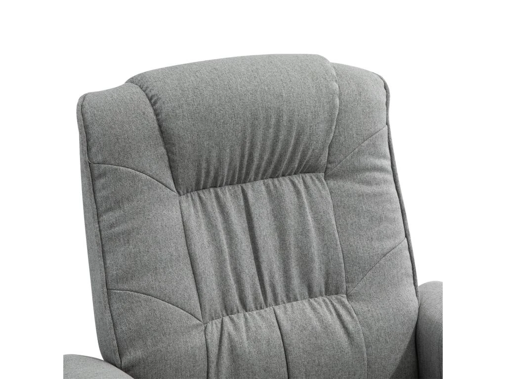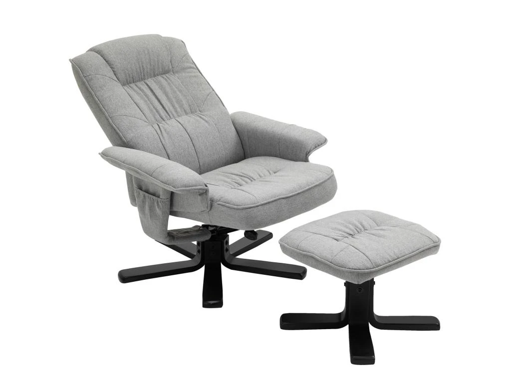– Le revêtement du fauteuil et du repose-pieds est en tissu de coloris gris.