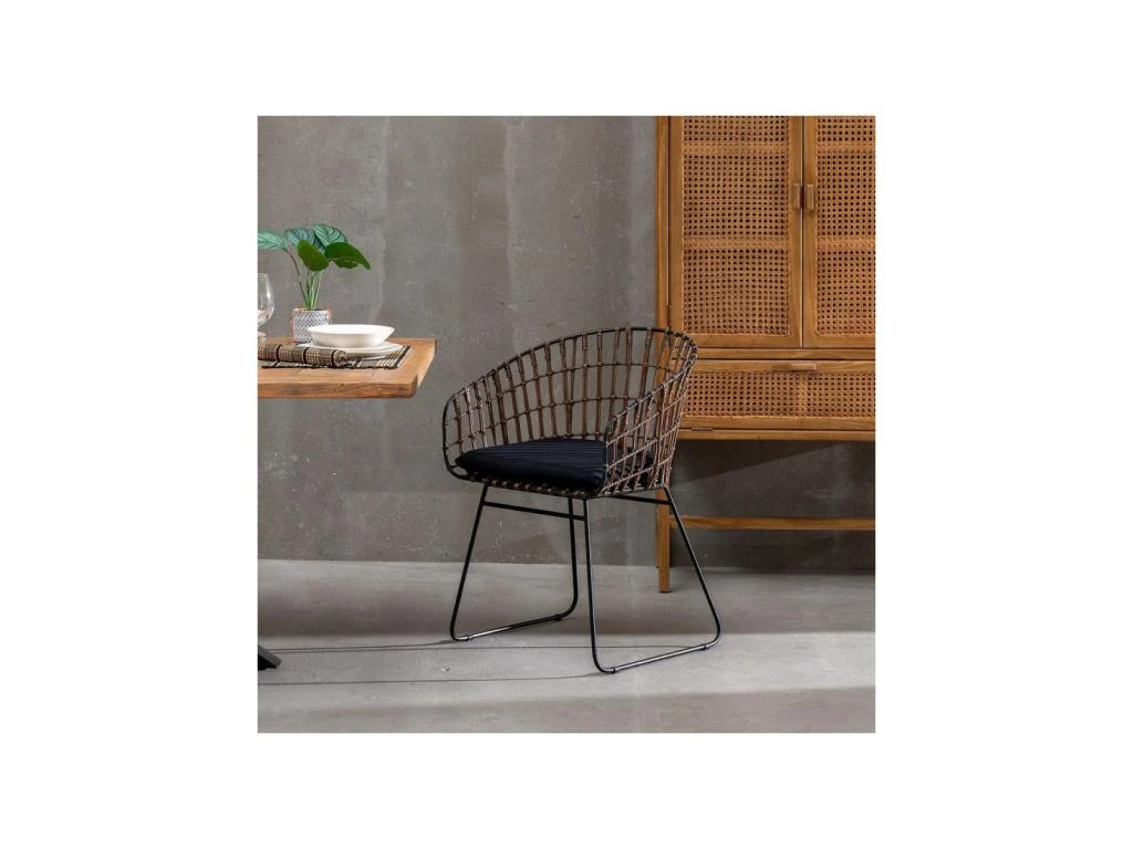 La structure en métal soutient efficacement une coque réalisée en rotin teinté marron pour un design intemporel et une légèreté visuelle du plus bel effet.