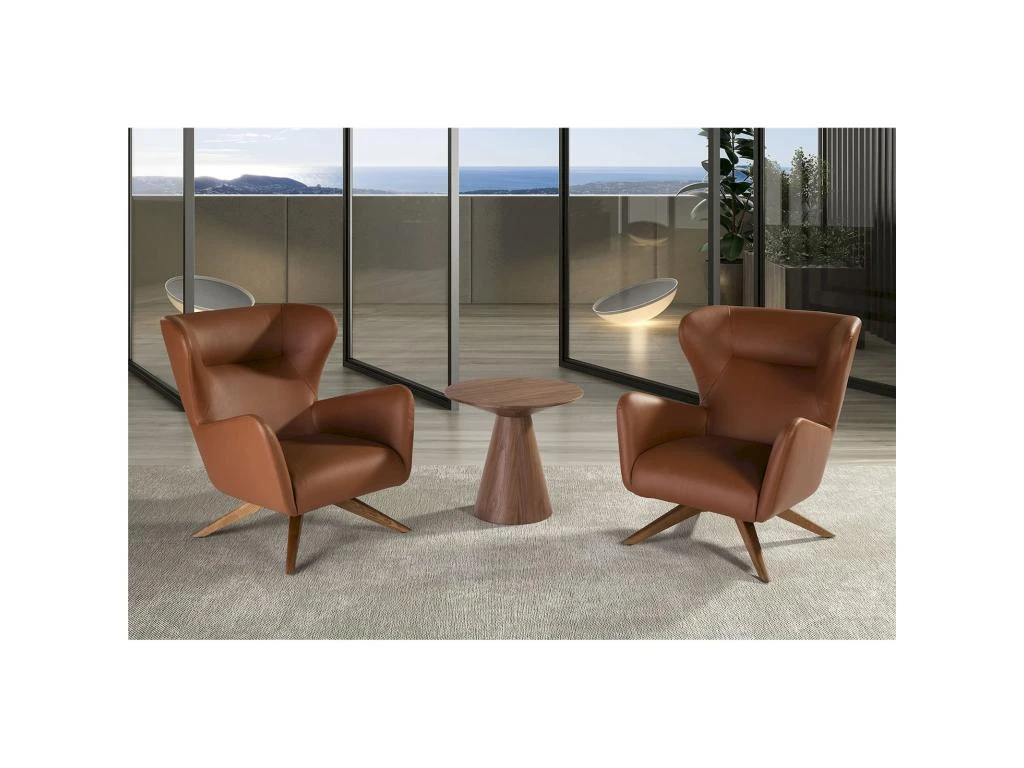 Fauteuil Tournant à 360 º Rembourré En Similicuir Pieds Bois Massif
