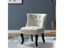 Petit Fauteuil Crapaud Rembourrée Avec Pieds Noirs Pour Salle à Manger, Salon, Entrée & Chambre-Gris
