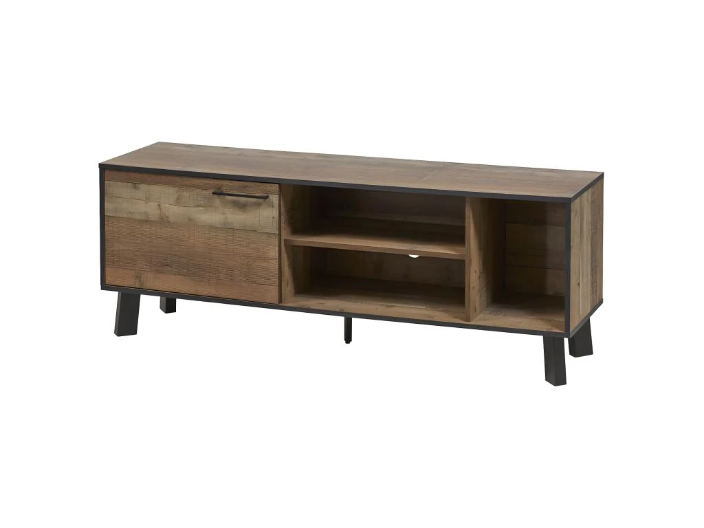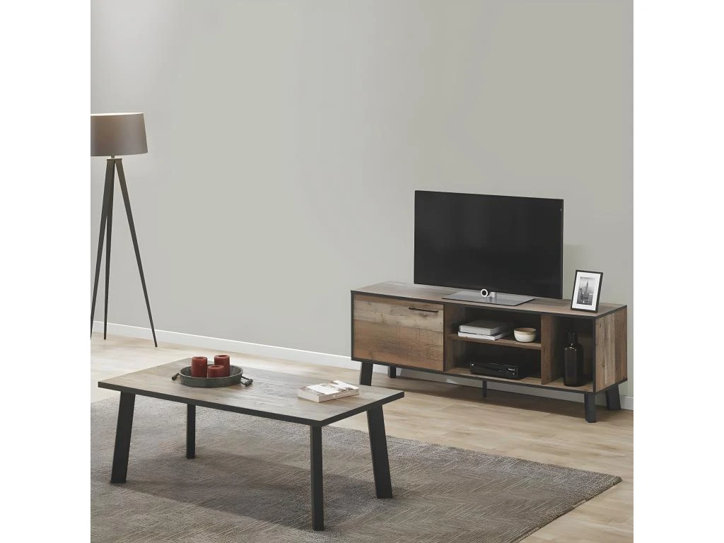 Meuble TV 1 Porte 3 Niches Aspect Bois et Métal de la gamme Karmina.