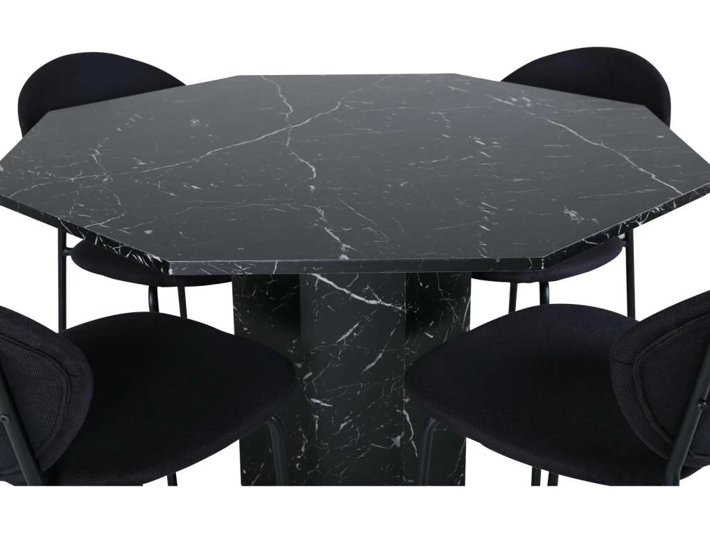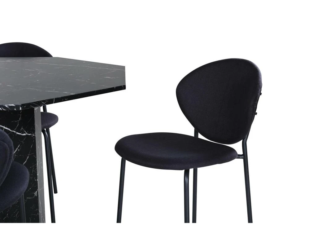 Marbs Table de salle à manger 60-15589-588. Øcm 110. Table de salle à manger cm: L110 x P110 x H75. Table de salle à manger: MDF composé Marbré Papier . Vault Chaise 60-15022-808. Numéro 4 . Chaise cm: L46 x H80 x P61,5. Hauteur d’assise cm: 49. Profondeur d’assise cm: 45. Largeur d’assise cm: 46. Poids maximal kg.: 150. Tissu. Chaise: 100% Polyester, Contreplaqué, Mousse, Acier .
