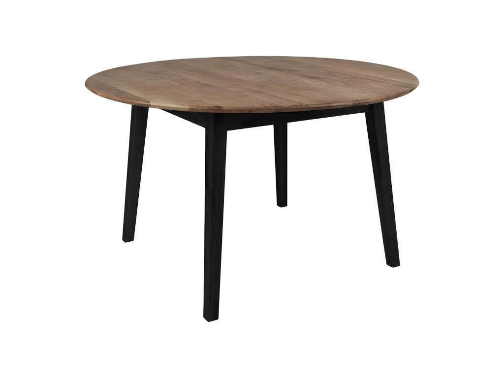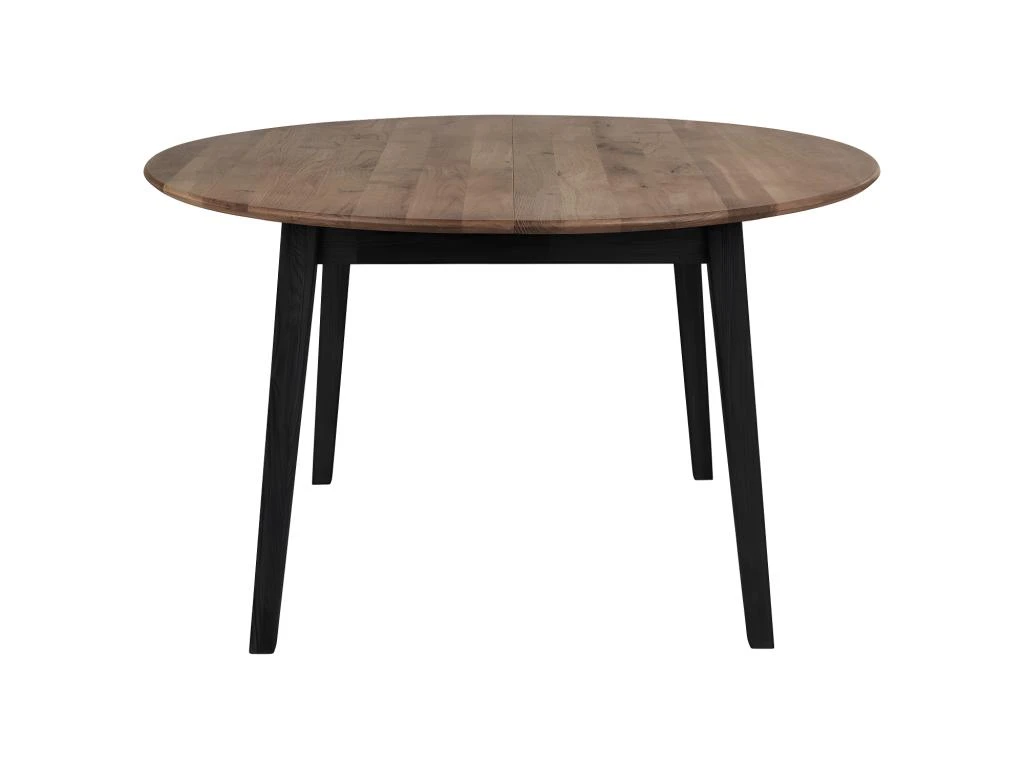 Cette table repas de forme ronde fait 140 cm de diamètre et mesure 75,5 cm en hauteur. Elle est conçue en bois de chêne, et son piètement carré permet de jouer sur les contrastes de formes.