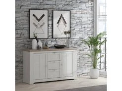 Amaretta Buffet Ancien Vieux Blanc Patiné Avec 4 Portes Et 4 Tiroirs, Largeur 186 Cm, Hauteur 86 Cm.