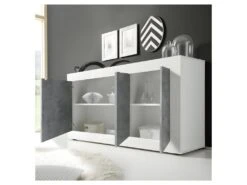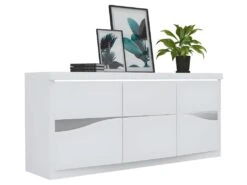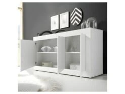 Buffet 2 Portes Et 3 Tiroirs Collection RAMOS. Éclairage LED Intégré. Coloris Blanc Brillant Et Noir