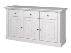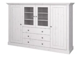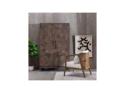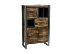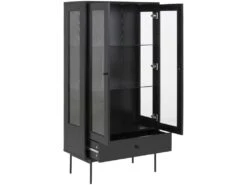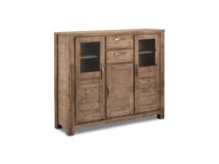 Alana Vitrine Avec 3 Portes Et 2 Tiroirs, En Bois D’acacia Teinté Brun, Livrée Prête à L’emploi.