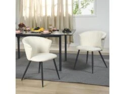 Lot De 2 Chaises De Salle À Manger Scandinave Fauteuil Assise Rembourrée En Bouclette Pieds, Blanc