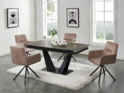 Chaise Avec Accoudoirs – Velours Et Acier Inoxydable – Beige Et Doré – PERIA De Pascal MORABITO