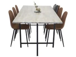 Jepara Ensemble Table, Table Teck Et 6 Polar Chaises Similicuir PU Marron.