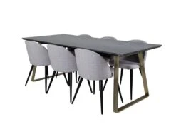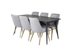 EstelleBLBR Ensemble Table, Table Noir, Marbre Et 6 Velvet Chaises Grisclair, Noir.