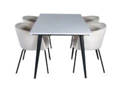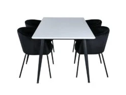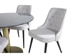 EstelleØ106BLBR Ensemble Table, Table Noir, Marbre Et 4 Velvet Deluxe Chaises Grisclair, Noir.