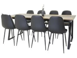 Jakarta Ensemble Table, Table Teck Et 8 Polar Chaises Similicuir PU Noir.