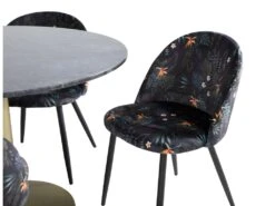 EstelleØ106BLBR Ensemble Table, Table Noir, Marbre Et 4 Velvet Chaises Velours Fleuri.