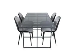 Leif Ensemble Table, Table Enfumé Verre Et 4 Emma Chaises Velours Gris,noir.