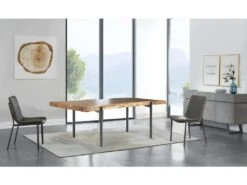 Alana Table De Salle à Manger 90×180 Cm, En Bois D’acacia Teinté Brun Avec Espace Pour 2 Extensions.