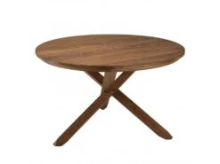 ALIDA – Table à Manger Ronde Marron 130x130cm Pieds Croisés Teck Recyclé Acacia Mahogany Recyclé