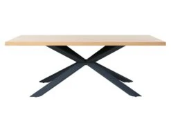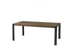 ALIDA – Table à Manger Rectangulaire 200×100 Cm Plateau Teck Recyclé Métal Noir