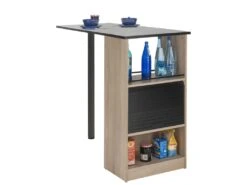 Meuble Rangement De Cuisine Chêne Avec Table – Coloris: Noir