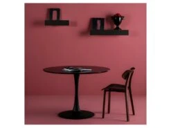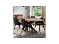 Table De Repas Revêtement Effet Chêne Piètement Métal Noir Mat – MODE