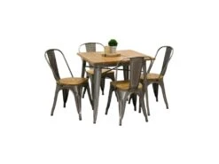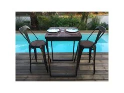 NEVADA – Ensemble Table Et Chaises Haut En Acier Et Bois Massif