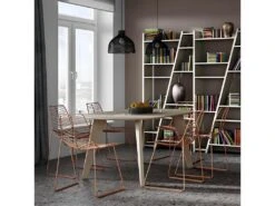 Table à Manger Extensible – 4 à 6 Couverts – MDF Et Métal Inoxydable – Blanc Laqué – CUSCO