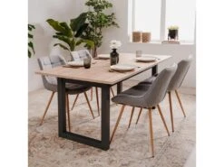 Table à Manger Extensible 4 à 8 Couverts En MDF Et Acier – Naturel Clair Et Noir – KOMONI