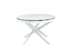 Table à Manger Extensible 4 à 8 Couverts En Céramique Et Métal – Effet Marbre Blanc – MELBI