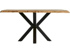 Table De Diner Piètements Courbés Bois Massif Plateau Verre Trempé Et Piètement Acier