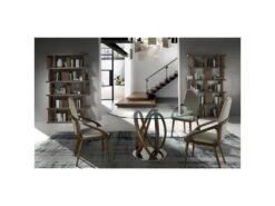 Table De Diner Pietement Courbé Noyer Massif Plateau Verre Trempé Et Piétement Acier