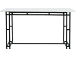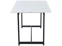 Table à Manger – Plateau Effet Marbre – Pieds Noirs En Métal- 140x80cm