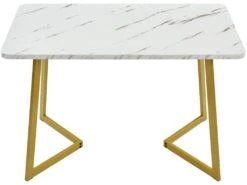 Table à Manger – Plateau Effet Marbre – Pieds Dorés En Métal- 120x70cm