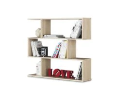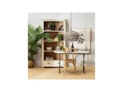 Base Étagère 1 Porte Vitrée Et 2 Tablettes De Rangement, Finition Chêne Structuré, Blanc.