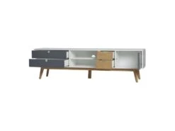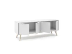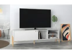 Meuble TV Avec éclairage LED Multicolore Banc Support Design Avec étagères 130 Cm Blanc 03_0005859