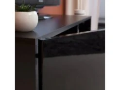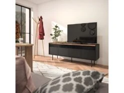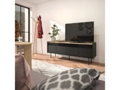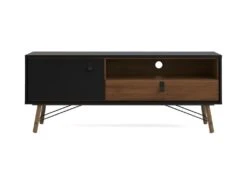 Slavia , Meuble TV Rectangulaire, Deux Portes, En Panneaux , Bois De Mindi Et Loom , Noir Et Naturel