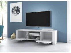 Meuble Télé Buffet Tv Télévision Design Pratique Support Pour Moniteur 40 Cm Verre Blanc 2502227