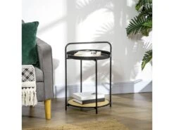Table D’appoint Avec 4 Roues Roulantes à 360° 2 Tablettes De Rangement 50x30x59cm Noir 20_0001158
