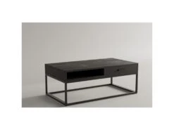 Table Basse Avec 1 étagère – Céramique, Verre Et Métal – Effet Marbre Blanc Et Noir – MURIENA