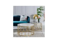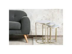 Tables D’appoint Gigognes Rondes En Métal Bicolore Collection LIVOS. Meuble Style Industriel