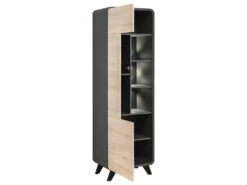 Vitrine Large Design Collection DARWIN. Couleur Chêne Clair Et Noir. 2 Portes, 3 Tiroirs, 3 Niches