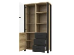 Vitrine Large Design Collection DARWIN. Couleur épicéa Et Noir. 2 Portes, 3 Tiroirs, 3 Niches