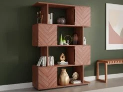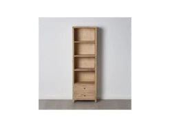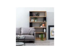 Bibliothèque 2 Tiroirs Et 3 étagères – Bois D’acacia Et Métal – Naturel Et Noir – JALEBA