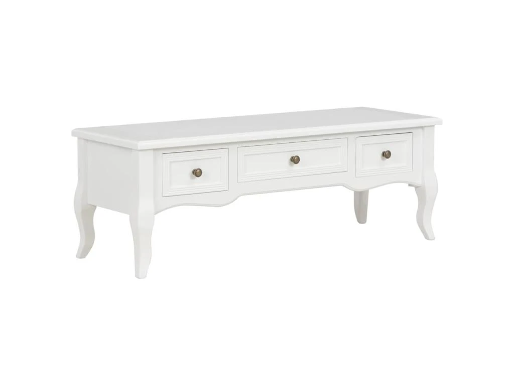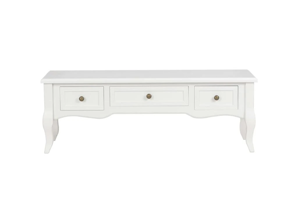 Ce meuble TV de style français est équipé de 3 tiroirs pour un grand espace de rangement.