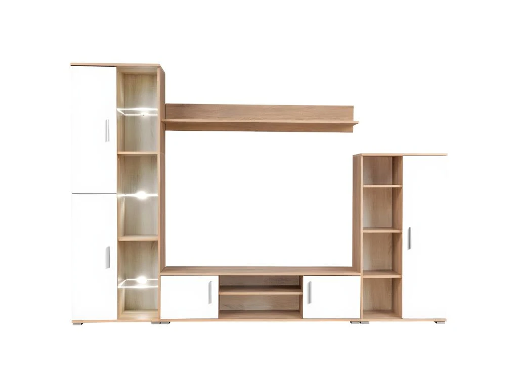 L’unité murale, composée de deux armoires latérales de tailles différentes, d’un meuble TV et d’une étagère de présentation, offre suffisamment d’espace pour ranger vos appareils multimédia, lecteur DVD, supports multimédia, livres et toutes sortes de petits objets.