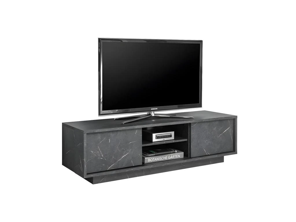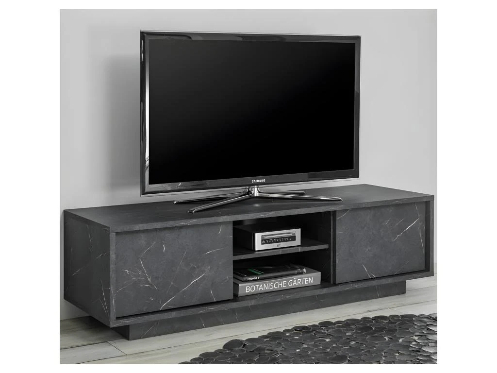 Totalement revĂŞtu d’une mĂ©lamine finition Marbre Noir au rendu très probant, ce très beau meuble audio/vidĂ©o bĂ©nĂ©ficie d’une grande rĂ©sistance aux rayures et Ă l’abrasion pour une durĂ©e de vie hors du commun.
