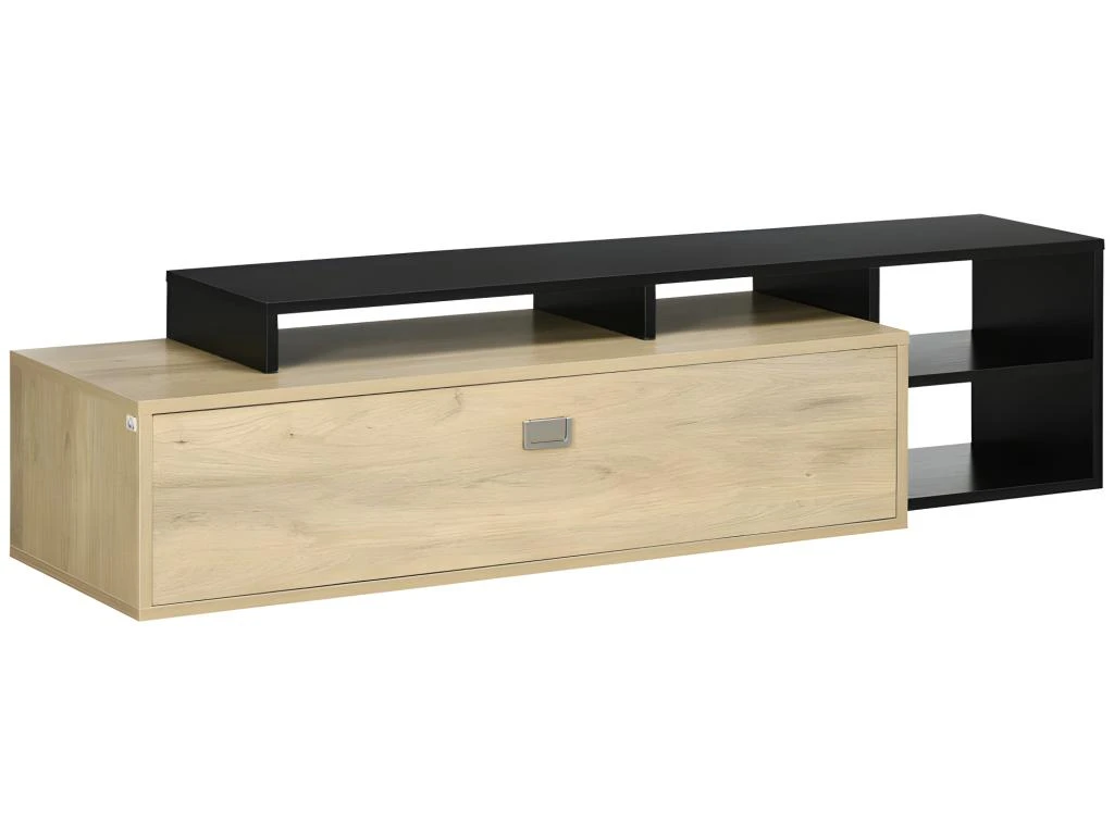 – Meuble TV réversible design contemporain bicolore aspect chêne clair noir idéal pour ajouter une touche de modernité et sublimer votre intérieur