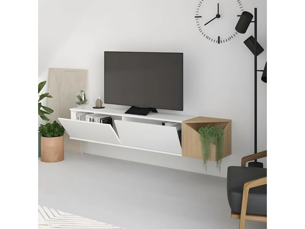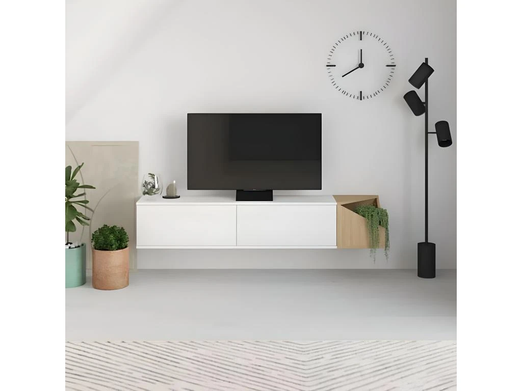 Meuble TV Avec 2 Portes Et 2 Niches – Bois De Sheesham Et Métal – Coloris : Naturel – ZELICINA